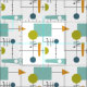 Tecido Fluxograma Geométrico Funky - Médio-Século Moderno