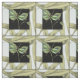 Esse desenho de folhas de Jennifer Goldberger apresenta um inset de uma libélula sobre fundo negro. A sensação noturna do inset contrasta com a sensação diurna do impressão das folhas. Confira!
