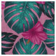 Tecido Folhas de Monstera e Hibiscus Teal e Rosa a Rosa