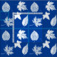 Um padrão de folhas de outono variadas, digitalmente realçadas e coloridas - folhas brancas em um fundo azul cobalto profundo