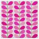 Tecido em um teste padrão inspirado dinamarquês moderno de matéria têxtil do meio século das folhas estilizados - máscaras do rosa, do rosa pastel ao fúcsia profundo/rosa quente, em um fundo branco