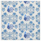 Tecido Folk Rooster/Cockerel/blue floral, corações de 4"