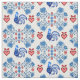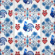 Tecido Folk Rooster/Cockerel/blue/red floral, corações 4"