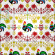 Tecido Folk Rooster/Cockerel gold/red floral, corações/4"