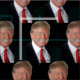Foto do Presidente Donald Trump, repetindo o padrão no tecido. Na moda e design moderna. Celebre o nosso Presidente ou crie algo para vestir a uma manifestação de campanha com este festivo tecido de toalha para costurar e artesanatos,
