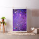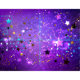 Fundo de faturas violetas com estrelas douradas e azuis. Fundo com estrelas.