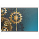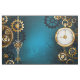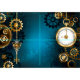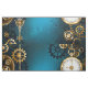 Turquesa, texturizada, fundo steampunk com latão e engrenagens douradas, chave prateada e relógio. Estilo Steampunk.