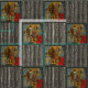 Para Jazz e Amantes de Arte Musical Funky em sua casa, escritório, dormitório ou clube! Um padrão de tecido verdadeiramente único que apresenta a pintura digital surrealista original de Leslie Sigal Javorek, que inclui músicos, instrumentos, e anotações selvagens, divertidas e bizarras, em cores ricas em negrito, alternando com preto esbranquiçado em quadrados de marfim em forma de prancheta.