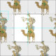 Um design de desenho engraçado com três camelos perdidos no deserto. Estão nas costas uns dos outros para terem uma boa vista e terem um mapa.