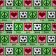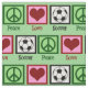 Bonito tecido de futebol com um sinal de paz, coração e uma bola de futebol fofa. Bonito padrão verde para um fã esportivo.
