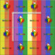 Um galo ilustrado em toda sua glória com suas penas de cauda prontas para um grito do arco-íris de De Colores para fora.