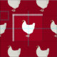 Tecido divertido inspirado em fazenda, com um padrão de galo branco, em um rico fundo vermelho. Ótima ideia para artesanato ou costura.