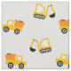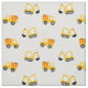 As crianças devem "cavar" este tecido de veículos de construção. Ele apresenta um caminhão de lixo e um padrão de carregador frontal na construção laranja amarelo, e preto.