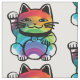Tecido Gato de Boa Sorte Japonês com Arco-Íris