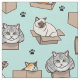 Aqui está uma variedade de gatos esmagados em caixas de vários tamanhos, porque se ele ajustado, eu sento. Este tecido tem felinos em tons de cinza, calico, tabby e siamês! Você também pode mudar a cor do fundo do chá. É o padrão perfeito para qualquer amante de gatos de estimação e vai tornar qualquer superfície mais doce!