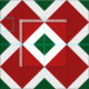Este tecido geométrico vermelho e verde corajoso é perfeito para projetos sewing do Natal. Caracteriza um teste padrão de formas vermelhas e brancas de bloqueio do diamante. Cada diamante branco contem um diamante verde pequeno que adiciona o contraste ao design original.