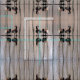 Este tecido animal apresenta um padrão geométrico de abstrato de gansos do Canadá migrantes sentados em um tronco superficial. As marcas marrom, preto e branco refletem-se na água. As ondulações azuis pálidas criam um fascinante design vertical de troncos de árvores refletidos.