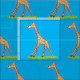 Do safari feliz. Esta girafa bonita tem uma borboleta no nariz com um fundo azul.