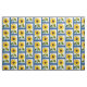 Os girassóis amarelos brilhantes são moldados no azul. Um tecido feliz e colorido para decorar sua casa e fazer acessórios do divertimento. Lei original da pintura e do design daqui até janeiro, artista internacional