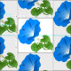 Flores gloriosas da manhã azul em padrão repetido, cor de fundo personalizável