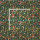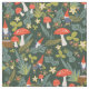 Padrão temático verde-branco e floresta vermelha desenhado por Shelby Allison com minúsculos caracteres gnomos, cogumelos, flores e folhagem.