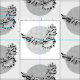 Uma ilustração geométrica moderna de um falcão. O pássaro preto e branco está voando em frente a uma lua de meio tom.