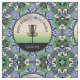 design de mandala colorida com silhueta de cesta e correntes de golfe, lembrando aos jogadores "Putt Plastic In It Place".