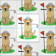 Golf Labrador Retriever - Cute Yellow Lab jogando golfe no campo de golfe, com um clube de golfe na boca, um boné e uma bola de golfe. Copyright © Angi Laframboise. Dons de desenho animado de cães relacionados ao golfe para amantes de cachorros e golfistas.