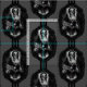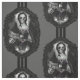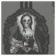 Uma pintura antiga de uma dama recebe um esquema de cor preto gótico, um crânio para um rosto e um quadro oval de ornamentado.