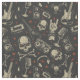 Crânio de estilo Grunge, ossos cruzados e vários instrumentos musicais em fundo preto, padrão de repetição sem descontinuidades