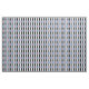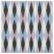 Um design de inspiração do século médio com um padrão de diamante de harlequin em azul, lilás poeirento, preto e branco.