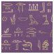 Este design ousado tem hieróglifos de ouro metálico inspirados no Egito em um fundo roxo.