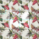 O teste padrão caracteriza o caladium vermelho e as flores brancas da orquídea, o Sansevieria (planta de cobra) e as grandes folhas e folha da samambaia.
