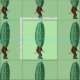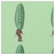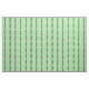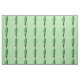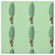 Este tecido personalizado do pátio tem uma imagem repetida de um homem engraçado em um terno marrom com uma grande cabeça de picles verde com um rosto surpreso em um fundo verde-claro.