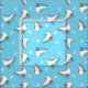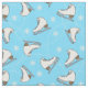Tecido azul claro com botas brancas de patinação e flocos de neve