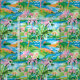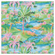 Um padrão sem costura, com palmeiras verdes e rosa em pequenas ilhas definidas no oceano, reproduzido no estilo de aquarela. A design capta a essência serena e tropical da vida na ilha com cores vibrantes e pinceladas fluidas, artísticas.