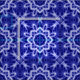 Este tecido das letras grandes tem um teste padrão bonito da mandala no azul, com um efeito de incandescência branco macio. Você pode usar-se personaliza para mudar o sentido e o tamanho do impressão.