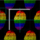 design LGBT-temático que caracteriza uma impressão digital do polegar com cores do arco-íris