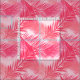 O tecido em um impressão da sobreposição em folha de palmeira mostra em silhueta, nas máscaras do rosa coral profundo e do pêssego, contra um fundo pastel do rosa do escudo