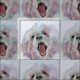 Uma pintura original do cão de Susan Abell imprimiu no algodão penteado em um teste padrão do azulejo.