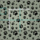Tecido Impressões de pata preta dispersas em verde de sáb