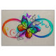 Multicor, brilho, símbolo de infinidade com arco-íris, monarca de borboleta detalhada. Borboleta-arco-íris. Arco-íris infinito.
