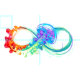 Símbolo multicolorido infinito com águas-vivas brilhantes do arco-íris decoradas com tentáculos longos em fundo branco. Água-viva arco-íris.