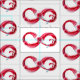 Infinity symbol of continuous stream of red wine pouring into glass wine glass on white background.