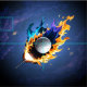 Intensidade de chama: A bola de golfe em ação. Uma brilhante bola de golfe branca é rodeada por uma espetacular exibição de chamas de fogo. As chamas laranja e amarela tremem à volta da bola de forma selvagem e dinâmica, como se a envolvesse num poderoso momento de ação. As chamas parecem dançar e praticamente pulsar com energia, reforçando a impressão de impacto iminente ou movimento explosivo.