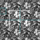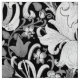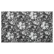 Tecido em um impressão floral de William Morris do vintage de lírios estilizados e de íris, digital aumentado e colorido, nas máscaras de cinzento/de cinzento e o branco em um fundo preto