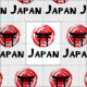 Ilustração de design de texto do Japão com sol vermelho gigante e decoração de portão de Torii para todos que gostam de viajar