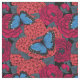 Padrão sem costura com borboleta azul-morfo desenhada à mão, hydrangea e peônias.