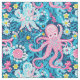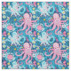 Um padrão desenhado à mão, sem descontinuidades, com polvos cor-de-rosa e brancos cercados por flores brancas, azuis e amarelas, colocados contra o fundo azul do oceano profundo. A design combina criaturas do mar branco com elementos florais vibrantes, criando uma encantadora e viva cena submarina.