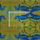 Um caleidoscópio de Blue Jays em um céu brilhante faz um tecido corajosamente colorido.